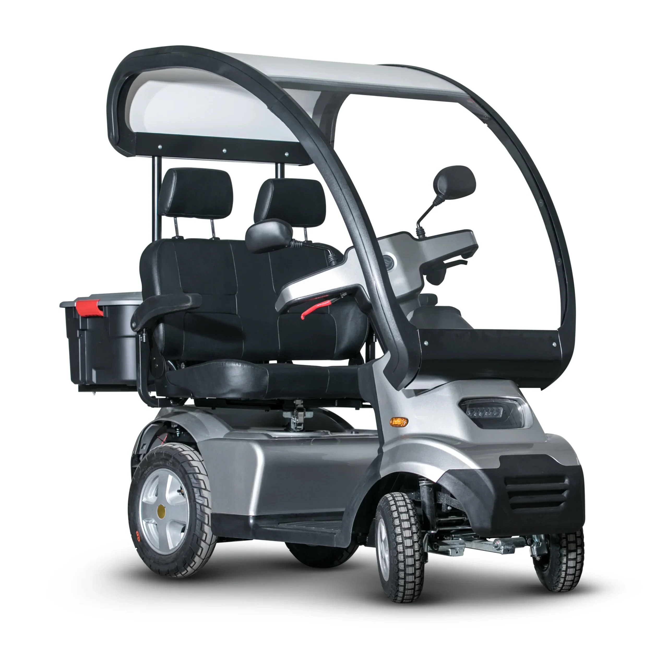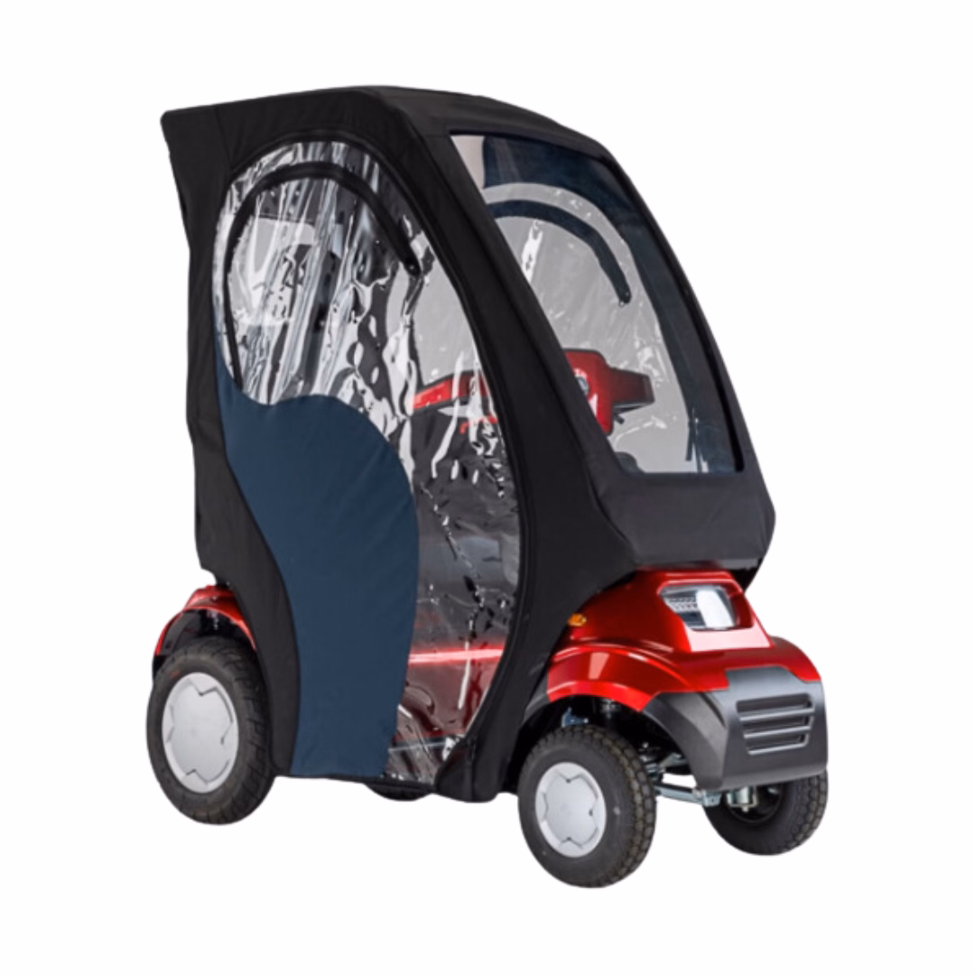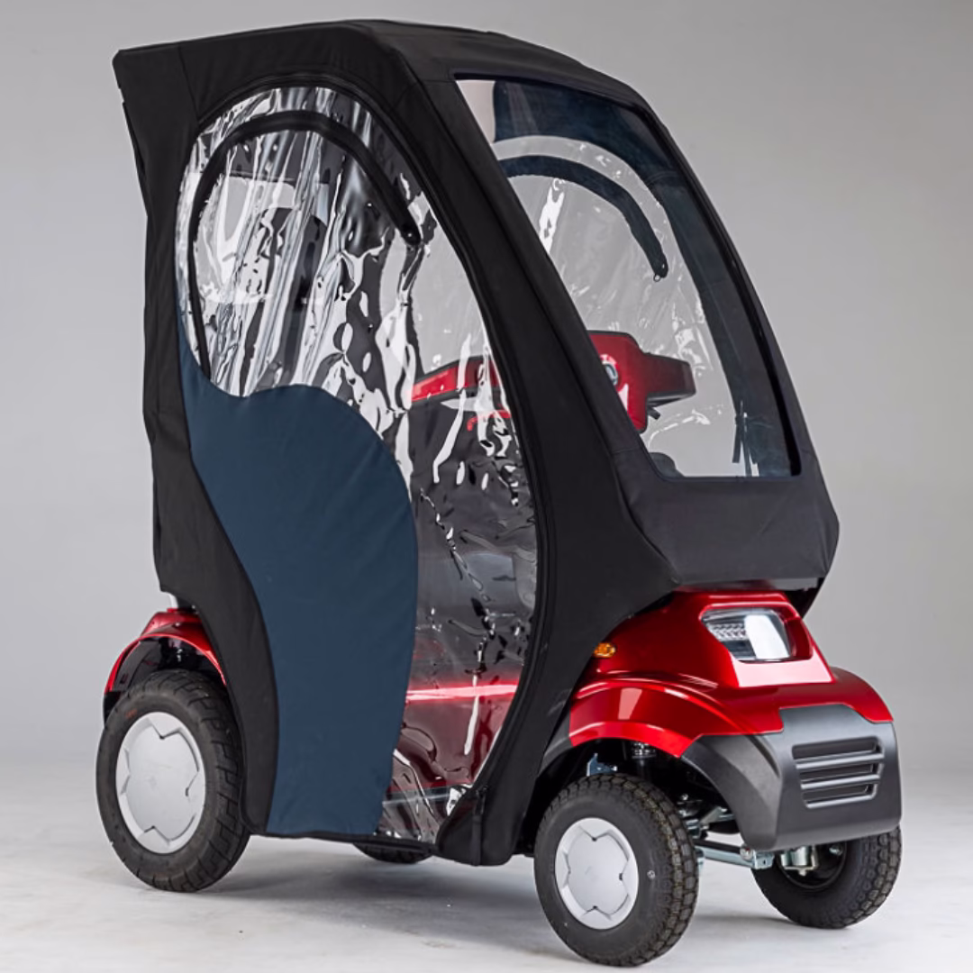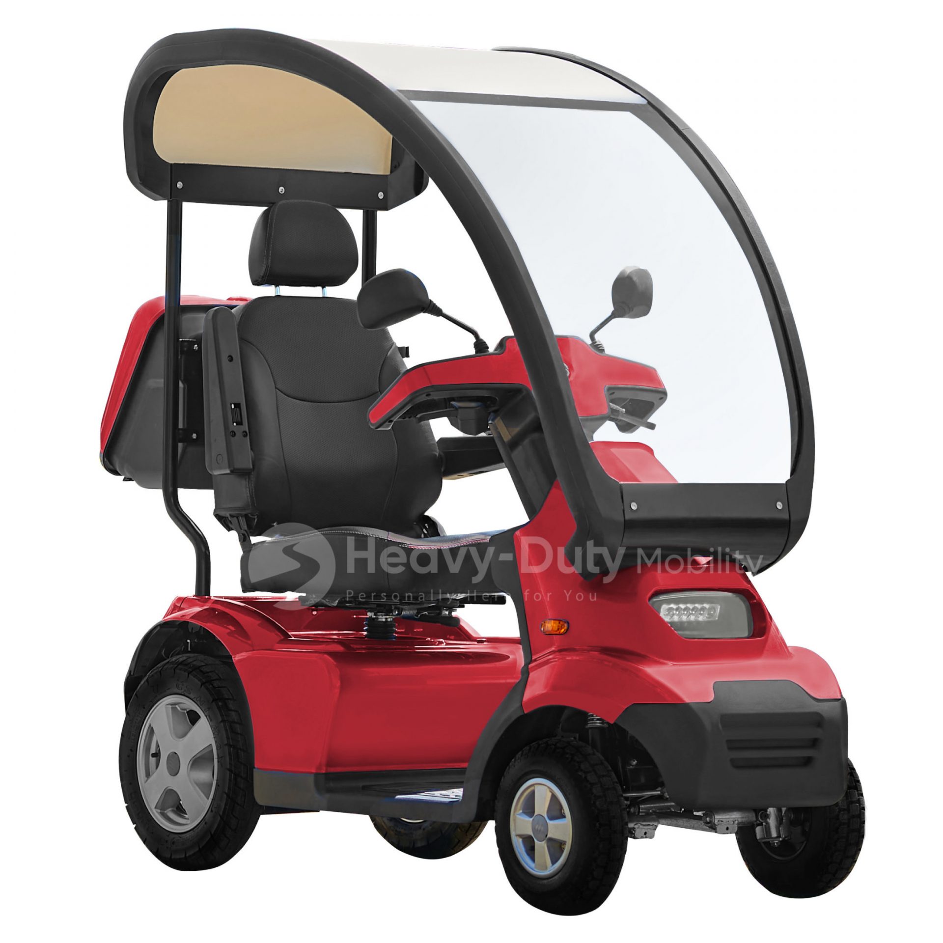 Comfort and dependability are built into every part of the heavy-duty design of the Afiscooter S4 Canopy. Possibly the most prominent feature is the canopy, itself. The canopy attachment is among the best designed mobility scooter canopies on the market today. It features a wide-angle windshield and wide-degree visibility format, so you don't have to contend with blind spots. The Afiscooter S4 Canopy is the ideal solution for any mobility challenged individual that does not slow down simply because the weather is not ideal.The all-weather, all terrain design of the Afiscooter S4 Canopy makes it easy to venture anywhere you want to go with less compromise. Four high end wheels provide optimal stability and dependability in both urban and rural environments. Whether you are headed to the store or going to a friend’s house, you'll enjoy the heavy-duty, all-weather design of this 4-wheel mobility scooter.The Afiscooter S4 Canopy has the ability to travel 31+ miles on a single charge at a speed of up to 11mph, depending on motor size chosen for your device.This scooter makes travel easy and fun, but safety is always apparent as well. Dual rear-view mirrors, an onboard headlight, horn, and blinker system help you remain safe on every journey. There is no limit to where the Afiscooter S4 Canopy can take you. Take the time to explore more about the impressively designed Afiscooter S4 Canopy and what it can do to enhance your personal mobility.Not A Light Duty Mobility Device