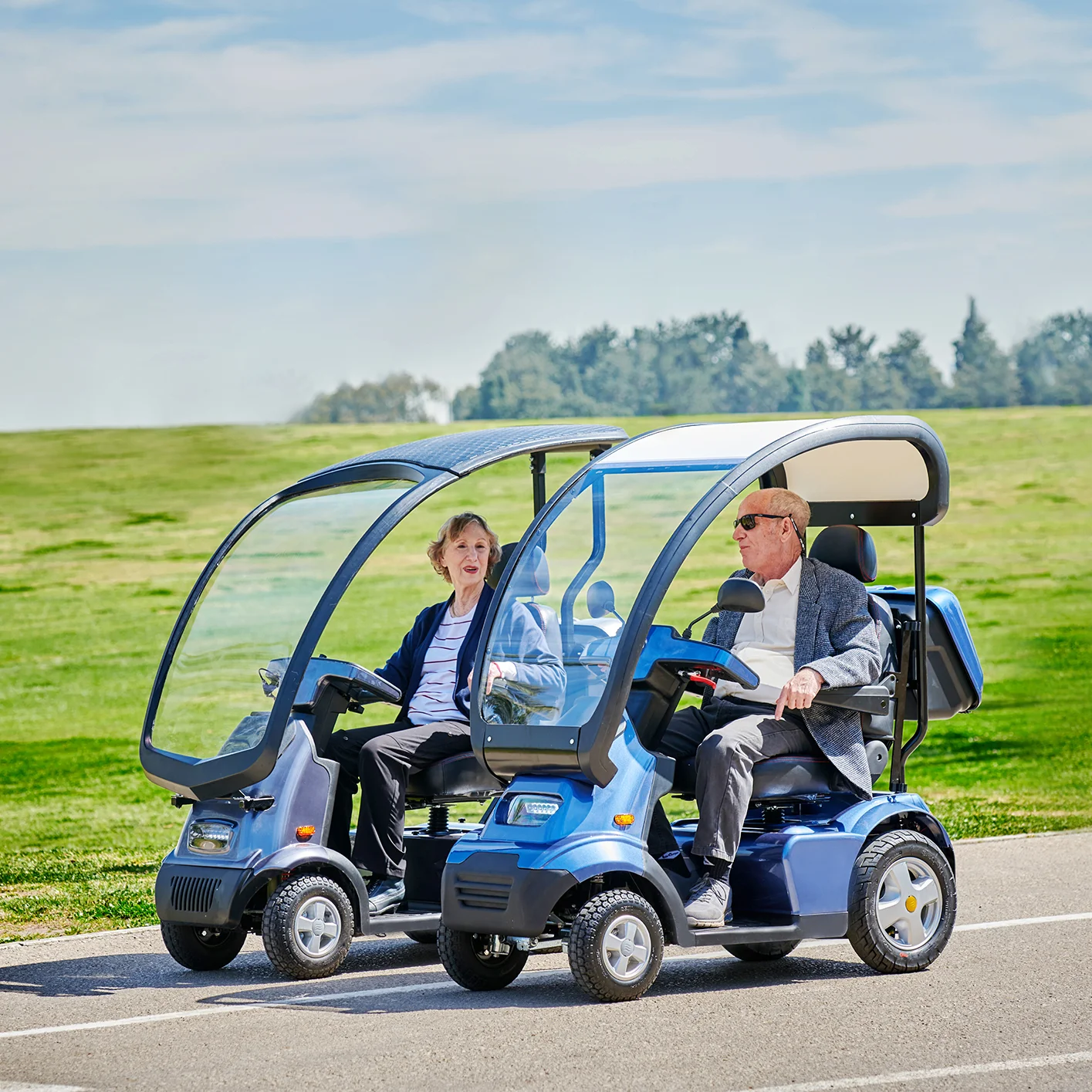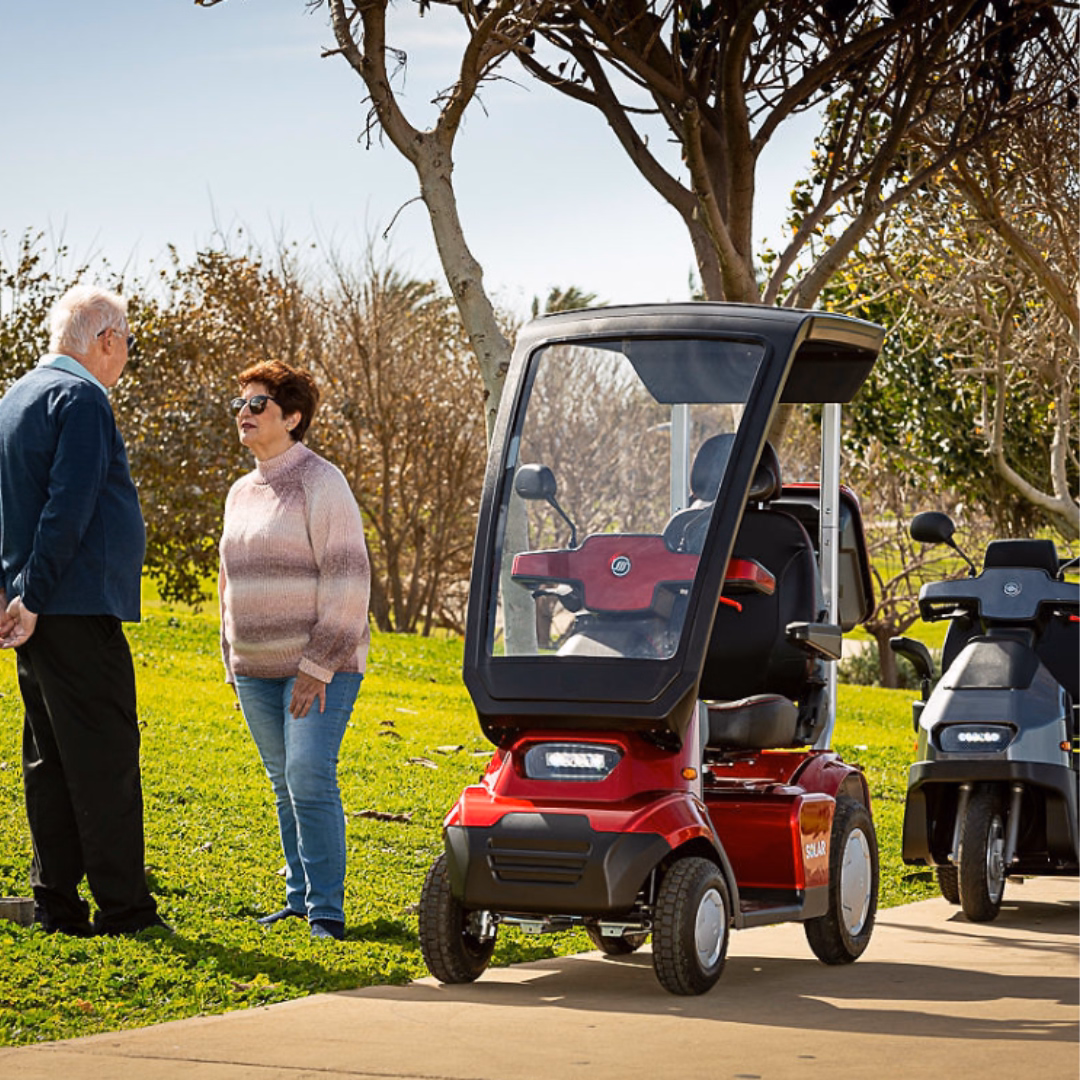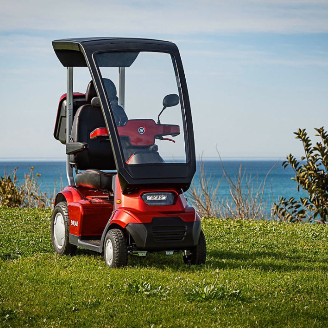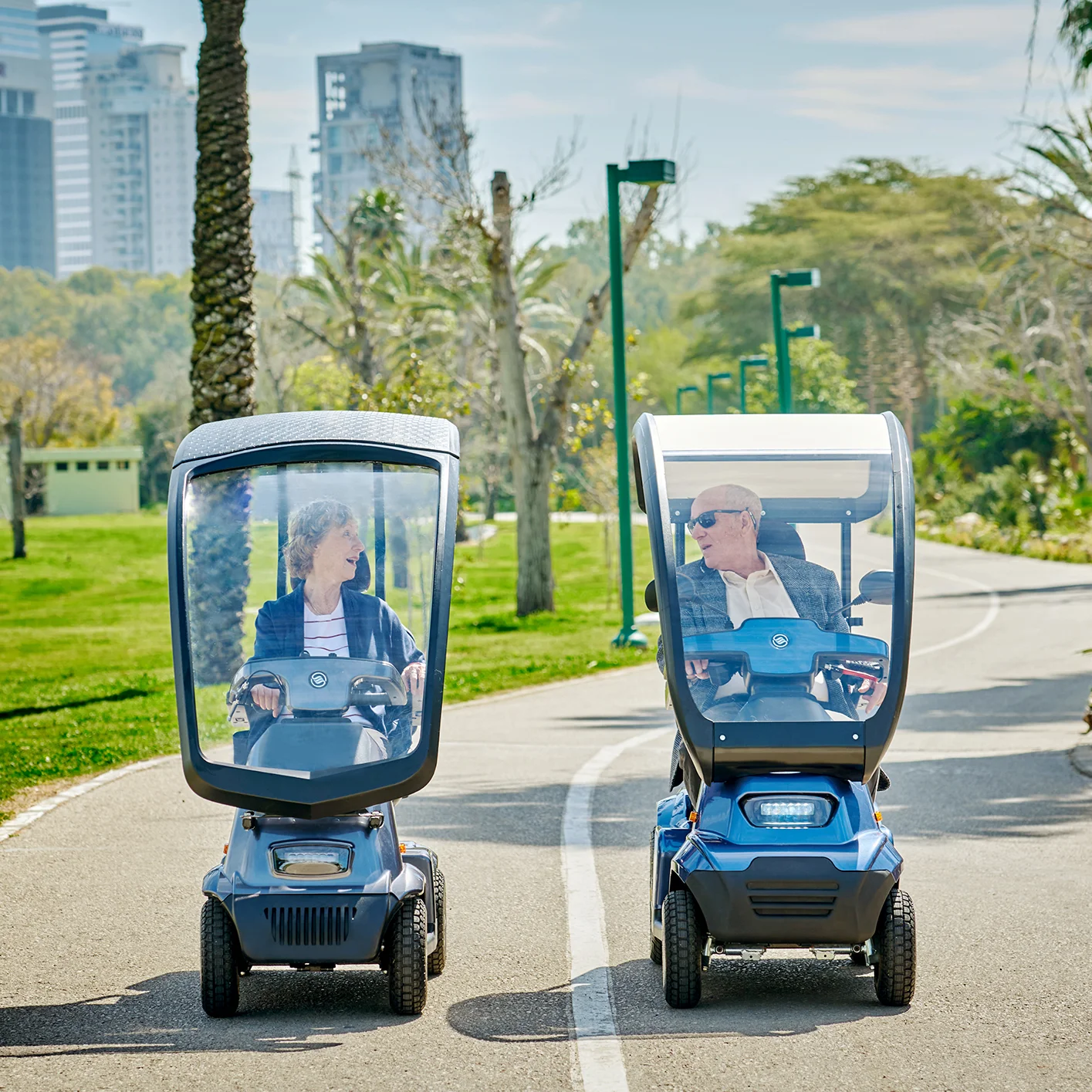 The Afiscooter S4 Canopy is more than just a mobility device. It is designed to be your companion on every journey. That includes providing adequate storage for all your needs. First, users enjoy a standard lockable storage compartment on the front of the vehicle and additional storage areas on the tiller for smaller items. For even more storage, a large capacity rear lockable storage compartment comes standard with each scooter.Specifications