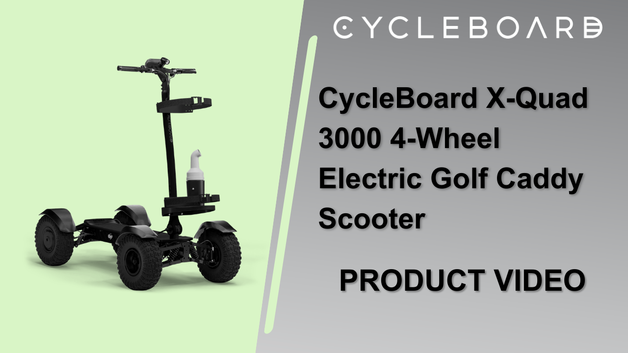 The CycleBoard X-Quad Golf Electric Scooter is designed to give golfers a faster and more exciting way to move around the course. This personal electric golf scooter lets you ride directly to your ball while keeping the pace of play moving. With powerful motors, long battery range, and a stable four-wheel design, it combines performance, convenience, and fun in one ride.