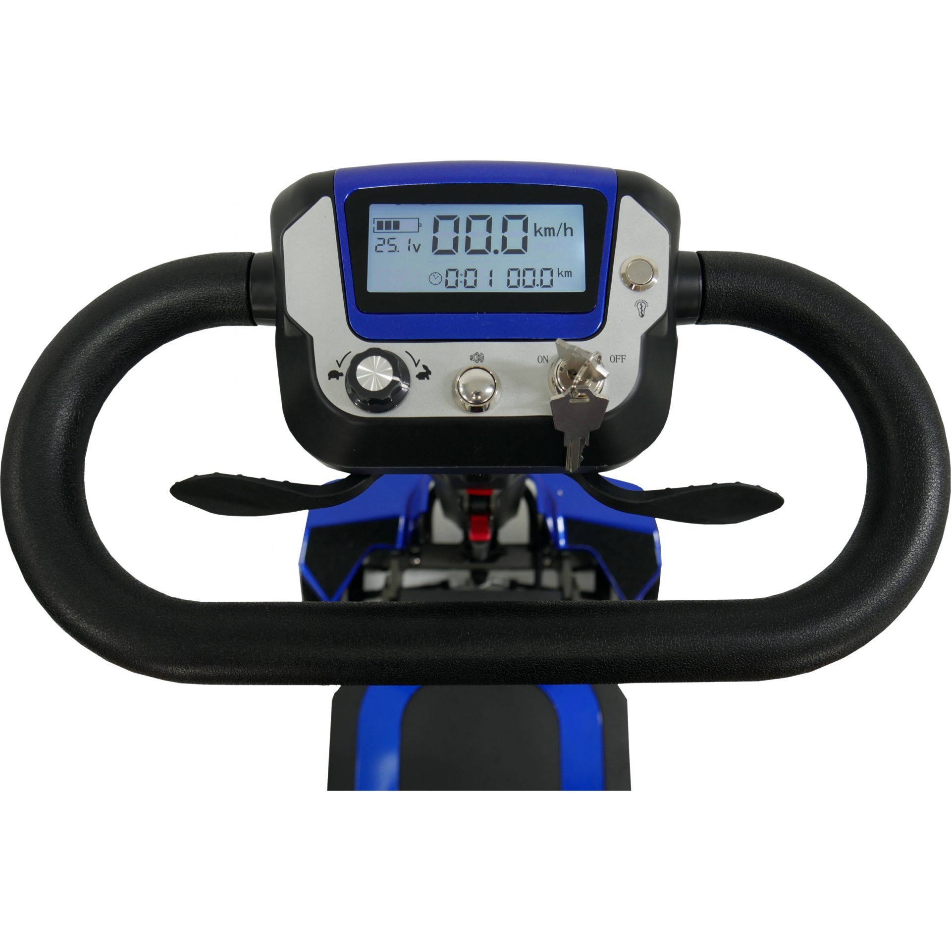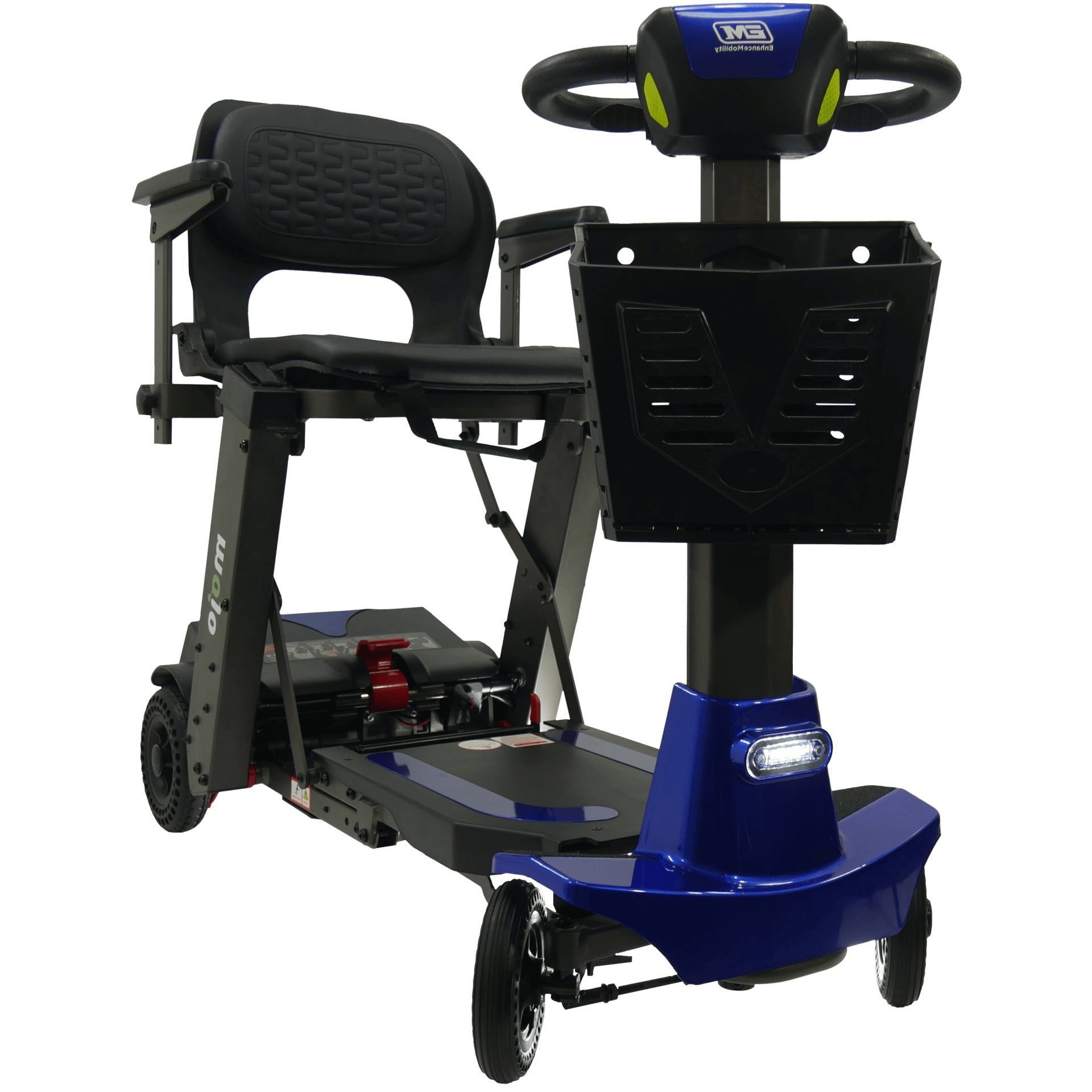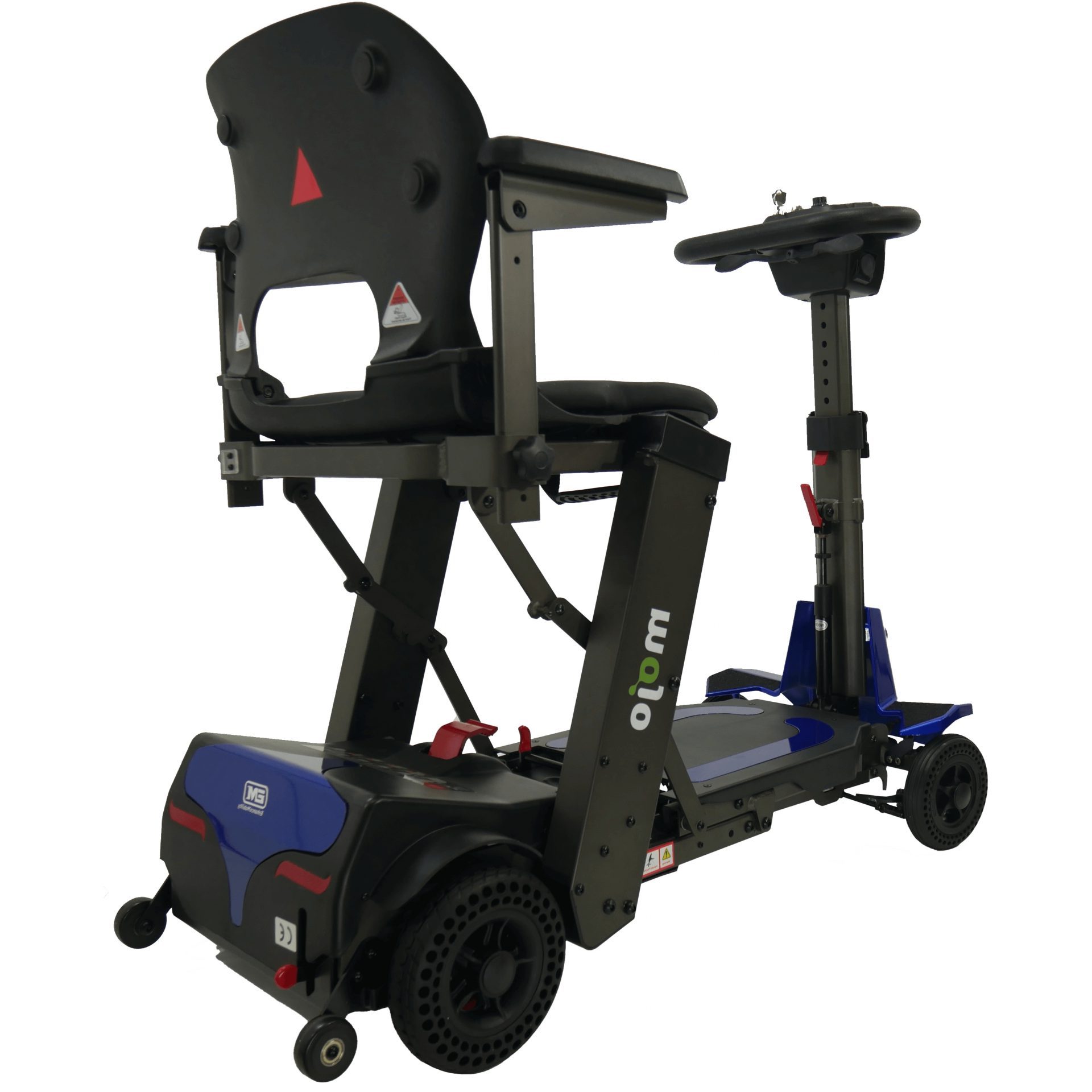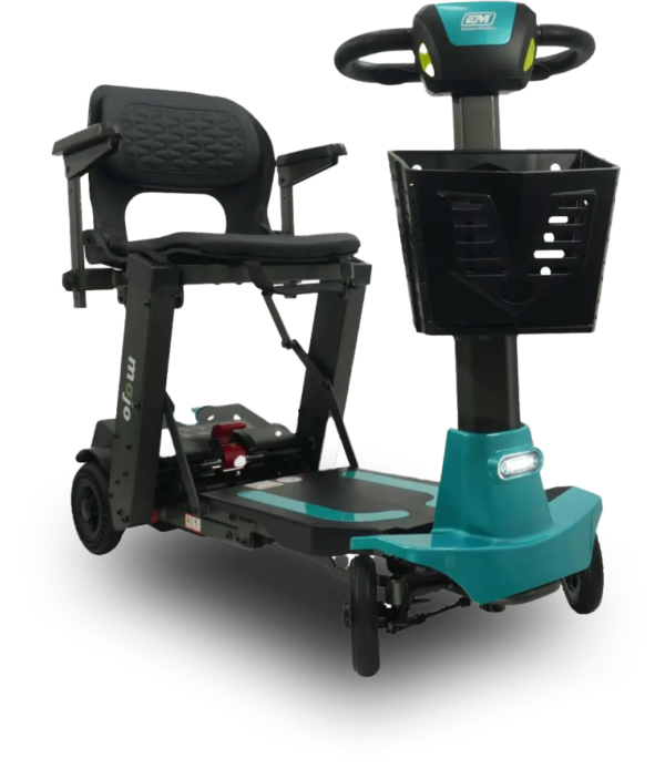 The Mojo Auto-Folding Scooter has a top speed of up to 3.75 mph, giving you a smooth and enjoyable ride. The total weight, including batteries, is just 58 lbs, making it one of the lightest scooters available. Even when split, the heaviest piece is only 38 lbs.Remote Control Key Fob Features