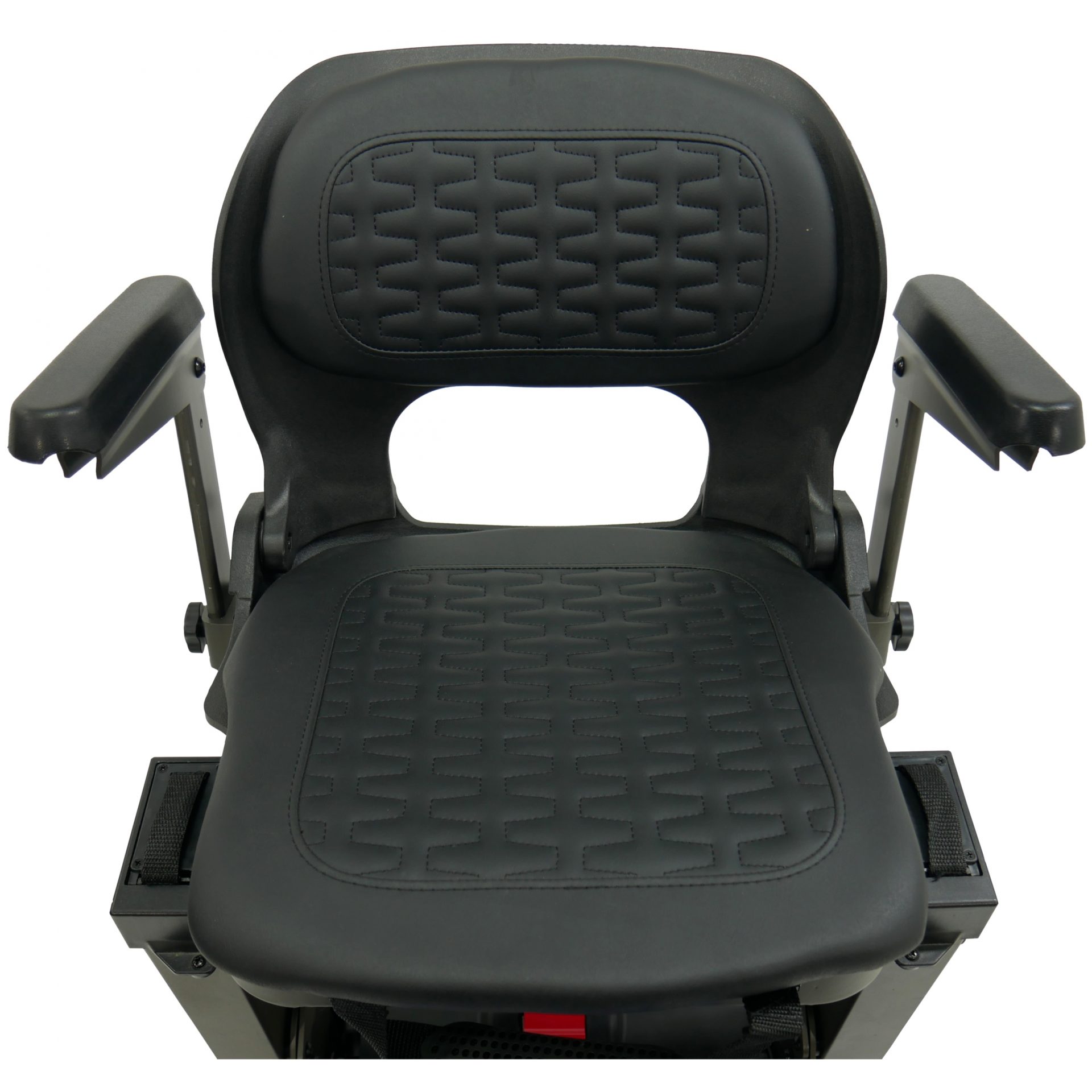 The seatback on folding travel scooters is also less comfortable than heavy duty scooters, and this scooter has no armrests.