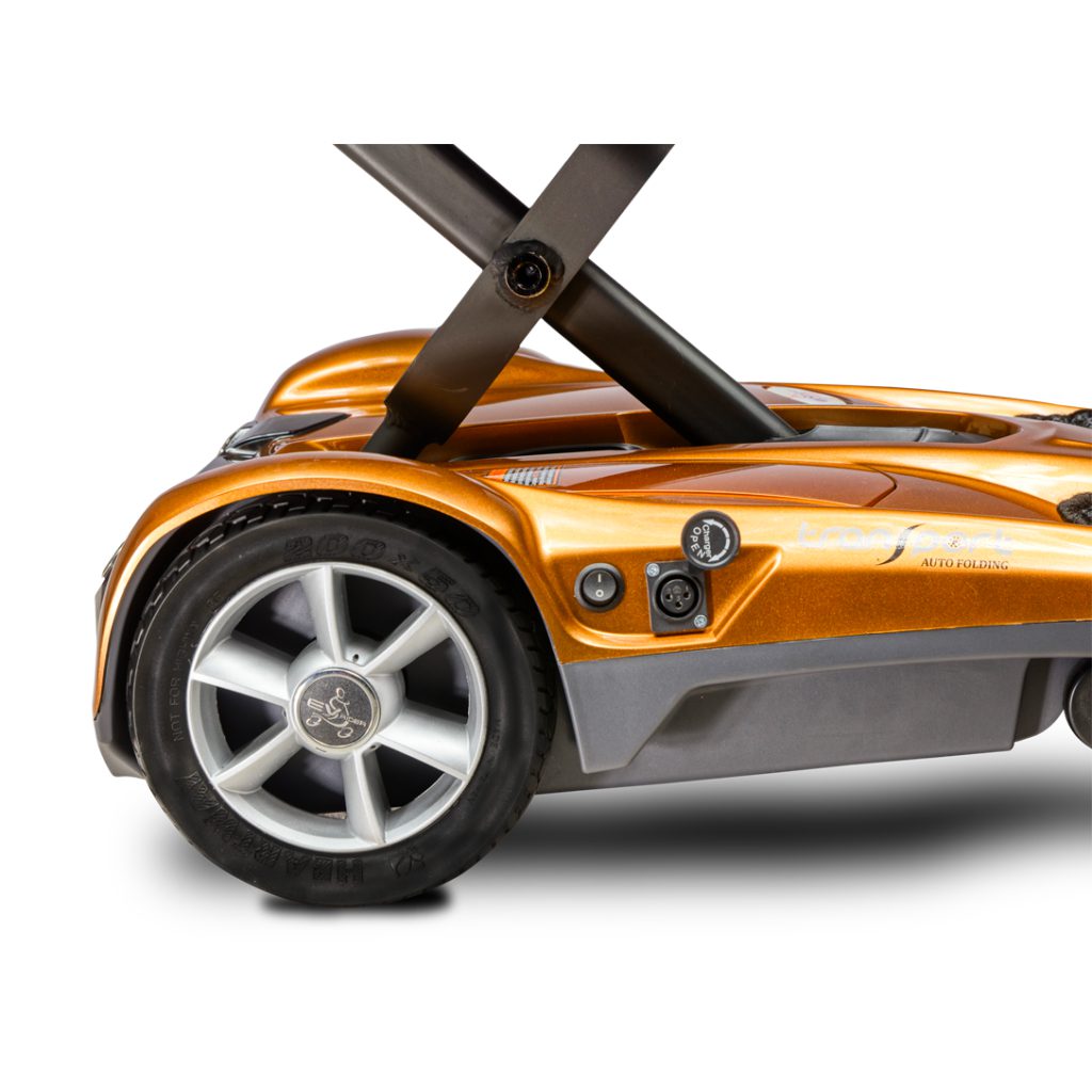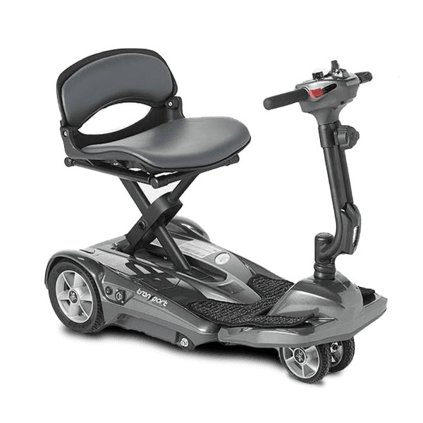 Known for their expertise in crafting exceptional automatic folding mobility scooter models, EV Rider sets the standard for convenience and portability in the industry. Travel has never been easier than with the EV Rider Transport AF. This remarkably well designed mobility scooter is enabled with features that make travel a breeze such as foldability, a lightweight format, and a slim design. Featuring a tight turning radius of a mere 31”, the EV Rider Transport AF enables you to go into some of the smallest areas without fear. Whether you are traveling to the grocery store or half way around the world, the EV Rider Transport AF can get you where you need to be safely and efficiently.The EV Rider Transport AF has been designed to be easy to use and versatile for a variety of mobility needs. With a total weight of just 49”, lifting the device into a cargo area of a vehicle is easy and with a folding height of just 17.7” and width of just 16.5”, this mobility scooter can be with you at all times. The EV Rider Transport AF moves at an easy to manage 3.8mph powered by a 180W 24V motor and a 25.2V 11.5Ah Lithium Ion Battery. The battery can be fully charged in just 6 hours with a range of up to 10 miles on a full charge.Effortless Folding Mechanism